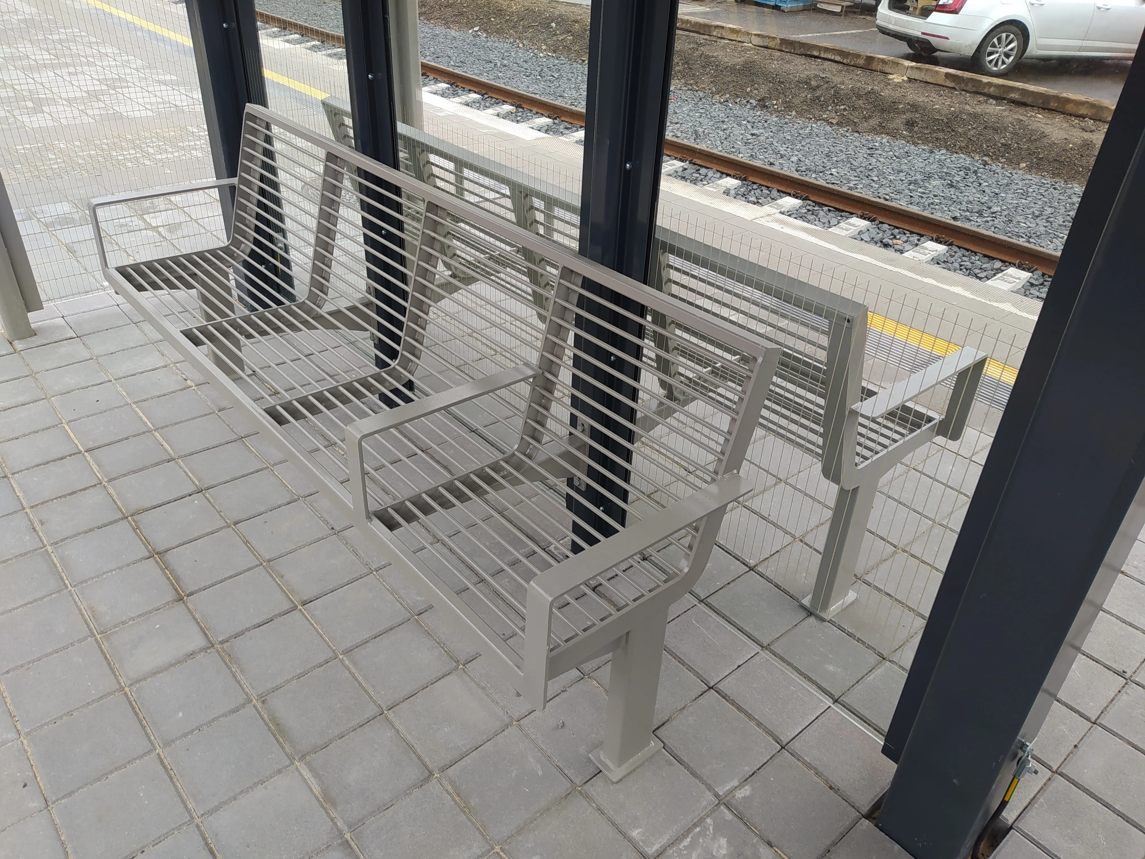Zastávka Kadaň - předměstí, výstavba železniční zastávky včetně výroby mobiliáře.