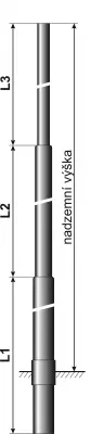 Třístupňový stožár vyrobený z ocelových trubek. Standardně je stožár opatřen ochrannou manžetou a je zaslepen na obou koncích. Stožár také může být opatřen dvířky.
