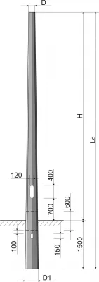 V základním provedení nemají stožáry otvory pro přívod kabelů do dutiny stožáru. Tyto otvory je ale možné vyrobit na přání zákazníka. Hloubka vetknutí stožáru do povrchu je 150 cm.