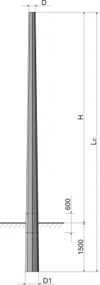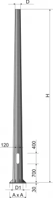 Dvoustupňový stožár vyrobený z ocelových trubek. Standardně je stožár opatřen ochrannou manžetou a je zaslepen na obou koncích. Stožár také může být opatřen dvířky.