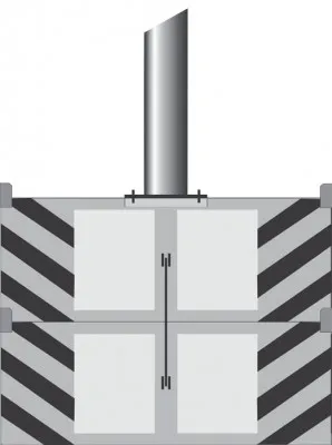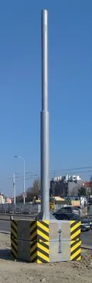 Mobilní základ - ocelová konstrukce vyplněná betonem. Standardně se skládá ze dvou spojených základových bloků, které jsou přizpůsobené k namontování přírubového stožáru.