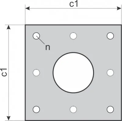 | Typ | d (mm) | c (mm) | c1 (mm) | h1 (mm) | L (mm) | A (mm) | n | kg |